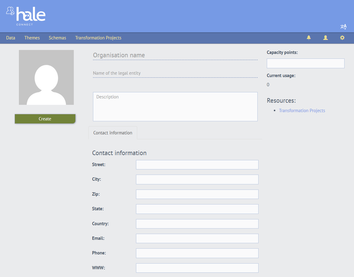 - Click «Create». Then you see the editing view of the organisation where you can apply further configuration. Further information can be found in the section Edit and delete organisation profile.